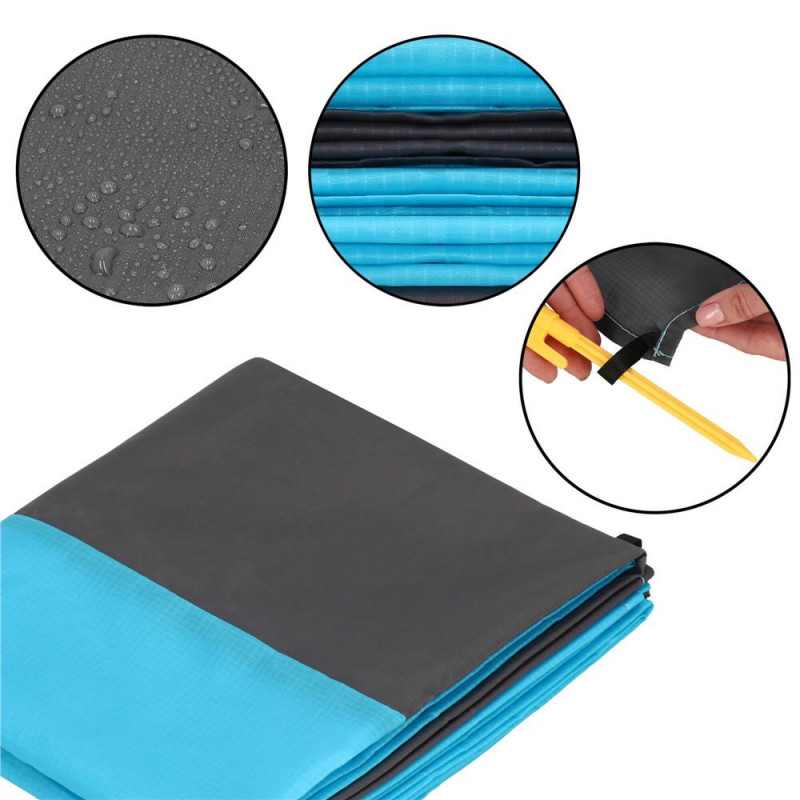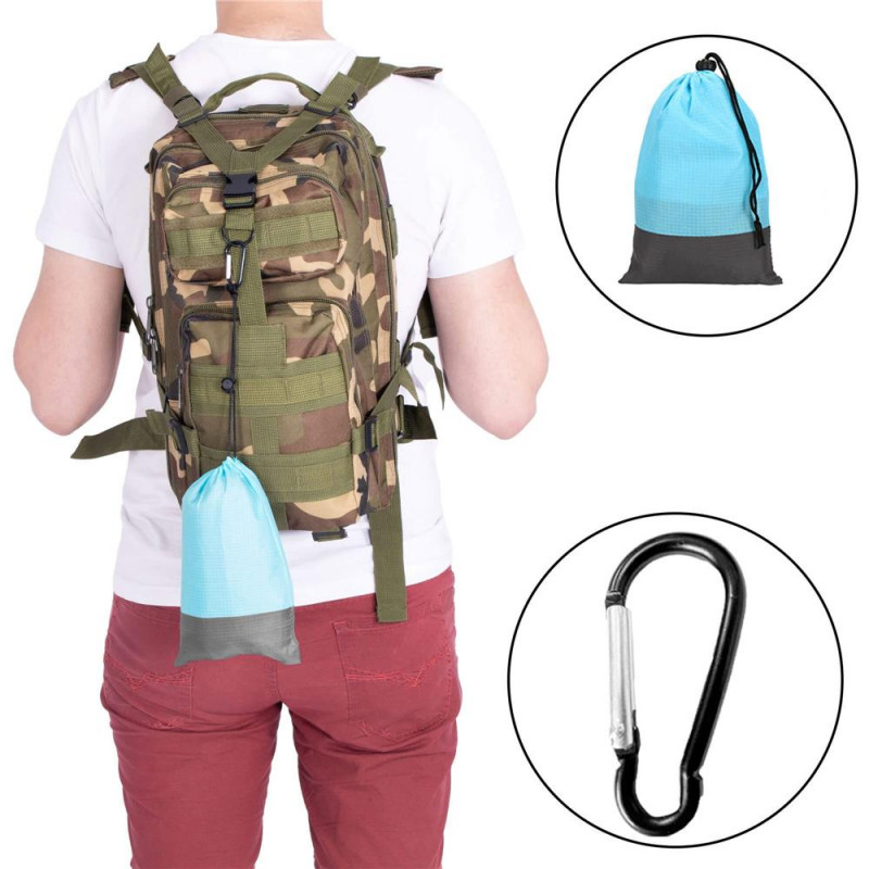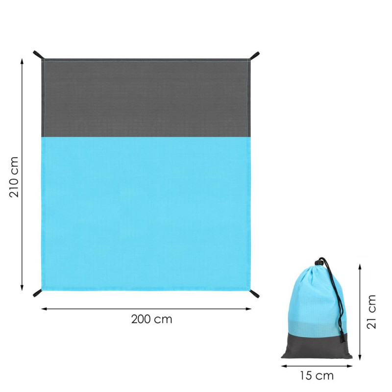 O excursie de vara la lac, la munte sau poate un picnic in afara orasului sau pe plaja? Cearsaful de plaja va va permite sa va odihniti confortabil in mijlocul naturii, izolandu-va de pamantul umed, nisip sau roua. Dimensiunea extrem de mica dupa pliere si carabiniera atasata va vor permite sa il duceti oriunde. Fibrele covorasului turistic nu necesita curatare sau tratament special. Doar scuturati patura sau clatiti-o cu apa daca este necesar. Se usuca rapid si este impermeabila, asa ca o suprafata umeda nu este o problema. Greutatea de doar 0,4 kg si dimensiunea redusa la care poti plia covorasul asezandu-l intr-o husa, il fac un produs care nu poate fi doar versatil si dependent de situatie, dar poate fi dus oriunde, Puteti atasa covorasul de plaja la sol pentru a preveni miscarea sau transportul acestuia de vant, datorita cuielor atasate. Colturile paturii au bucle cusute prin care este suficient sa treci ace cu un carlig si sa le infigi in pamant. Puteti pune covorasul nefolosit intr-o husa mica cu snur si il puteti atarna langa un rucsac, un bagaj sau o centura de pantaloni, folosind carabiniera mica si usoara inclusa. Este o solutie geniala atunci cand fiecare gram de greutate si centimetru de spatiu conteaza. AVANTAJE Dimensiune mare - 210 x 200 cm va permite mai multor persoane sa-l foloseasca in acelasi timp Impermeabil - nu lasa umezeala sa intre Ultra usor - greutatea sa este de doar 400g!Multifunctional - poate fi folosit ca covoras izolator de sol - de exemplu, sub un sac de dormit, sau ca patura, husa sau acoperis pe timp de ploaie, vant Durabil - foarte rezistent la rupere, decolorare si pete Poate fi spalat - poti indeparta cu usurinta orice murdarie de pe el Uscare rapida - nu trebuie sa va faceti griji cu privire la posibilul contact al acestuia cu apa Compact - este usor si pliat in husa, ocupa foarte putin spatiu Posibilitate de fixare in pamant - setul include stifturi pentru a atasa colturile cu ele Atasabil la rucsac sau ghiozdan - se livraeza cu carabina, cu ajutorul careia puteti atasa saculetul la cureaua pantalonilor sau la rucsac, fara a ocupa spatiu in interior Perfect la plaja - nu lasa nisipul sa treaca si are o suprafata alunecoasa, astfel incat sa nu culeaga firele de nisip PARAMETRI :Culoare: albastru, gri