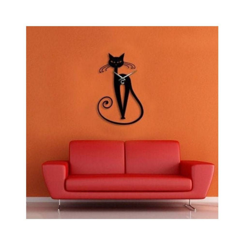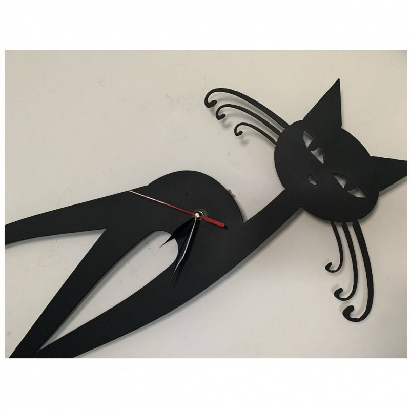 Ceas de perete metalic Krodesign Black Cat-1, diametru 60 cm