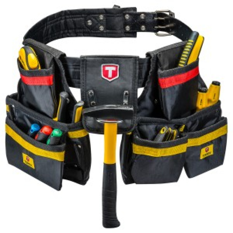 Centura tamplarie TOPEX din material plastic rezistent. Centura are 21 de buzunare intarite pentru o cantitate portabila mare de instrumente sau accesorii. Centura este reglabila in intervalul de 33-55", care ofera posibilitatea de a se adapta la silueta utilizatorului. Marca TOPEX se adreseaza mesterilor.