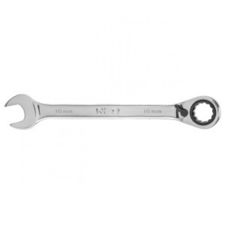 Cheie plata inelara si clichet Neo. Clichetul cu 72 de dinti in cheia inelara asigura un lucru rapid si sigur. Fabricata din otel crom vanadiu de inalta calitate, asigurand viata lunga instrumentului. Marca Neo indeplineste asteptarile profesionistilor.