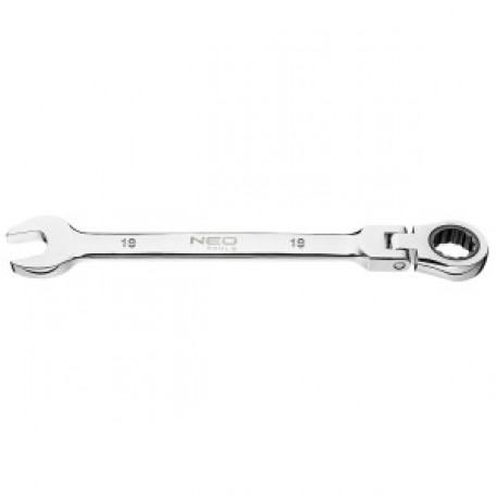 Cheie combinata fixa- inelara cu clichet si articulatie NEO. Se distinge prin precizia sa datorita celor 72 dinti si mecanismului cu clichet utilizat in inel. Aceasta solutie usureaza si finalizeaza mai repede munca. Este realizata din otel crom vanadiu durabil, asigurand viata lunga sculei. Calitatea instrumentului o confirma certificatul TÜV si garantia de 25 de ani a producatorului. Marca NEO indeplineste asteptarile profesionistilor.