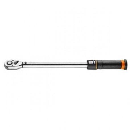Cheie dinamometrica Neo cu o precizie de +/- 4%. Deschiderea cu scala faciliteaza stabilirea valorilor dorite. Mecanismul puternic cu clichet din 45 de dinti. Fabricata din otel crom-vanadiu durabil. Cheia nu trebuie depozitata la valoarea maxima. Livrata intr-o cutie din plastic. Certificatul de calibrare confirma calitatea inalta a instrumentului. Marca Neo indeplineste asteptarile profesionistilor.