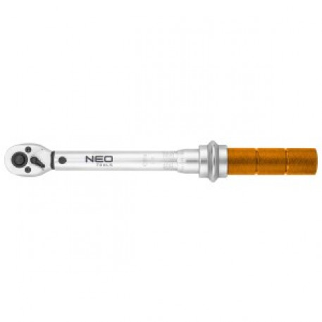 Cheia dinamometrica de ¼", 5-25 Nm, 08-822 de la NEO are un varf de ¼" si o gama de 5 pana la 25 Nm. Lungimea totala a instrumentului este de 25 cm. Cheia are o constructie metalica si o ranforsare a tubului din otel aliat. Are o precizie de +/-4% de la 20% la 100% din cuplul maxim. Echipat cu un mecanism de blocare de tip push-pull, permite o mai mare libertate de operare. Partea de lucru a cheii este fabricata din otel CrV durabil. Unealta nu trebuie depozitata cu arcul setat la valorile maxime. Calitatea este confirmata de un certificat de calibrare. Setul include o husa practica din plastic.