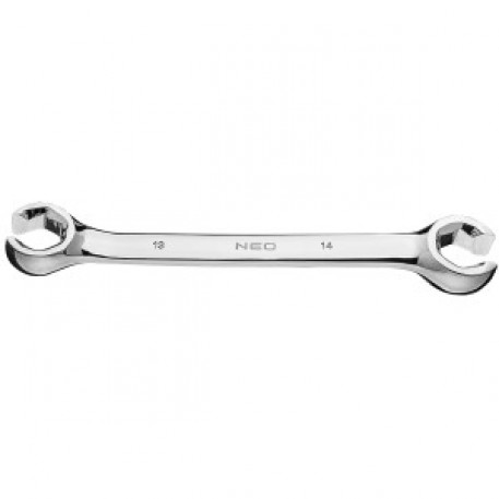 Cheie cu inele semideschise NEO, ce datorita formei este ideala pentru desurubare, inclusiv cablurile de frana, hidraulice. Fabricata din otel crom vanadiu de inalta calitate, asigurand viata lunga instrumentului. Inelele conice sub unghi de 15° faciliteaza munca in locurile greu accesibile. Garantia de inalta calitate si fiabilitatea produsului este certificata de TÜV si garantia de 25 de ani a producatorului. Marca NEO indeplineste asteptarile profesionistilor.