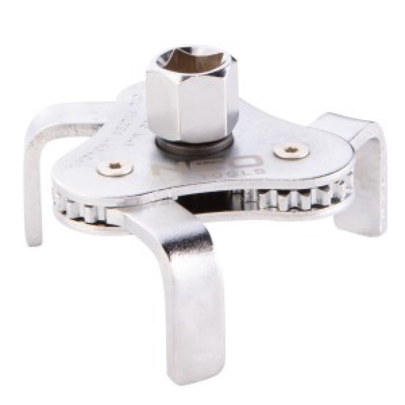 NEO pentru filtre de ulei pentru garaje profesionale si service auto si pentru amatori avansati. Cheie conceputa pentru instalarea eficienta si corecta a filtrelor de ulei externe cu carcasa metalica. Cheia are falci plate. Constructie cu trei brate. Adecvat pentru filtre cu diametrul cuprins intre 64 si 100 m. Setul include o reducere de 3/8" si 1/2".