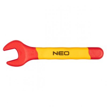 Cheia plata Neo (nr. 01-119), dimensiune 16 mm, este conceputa pentru strangerea si scoaterea suruburilor hexagonale.Certificata pentru utilizarea la tensiuni de pana la 1000 V. Poseda o singura fata incheiata cu o prindere dreapta gatuita. Fabricata din otel durabil din crom vanadiu, care-i asigura o durata lunga de viata.