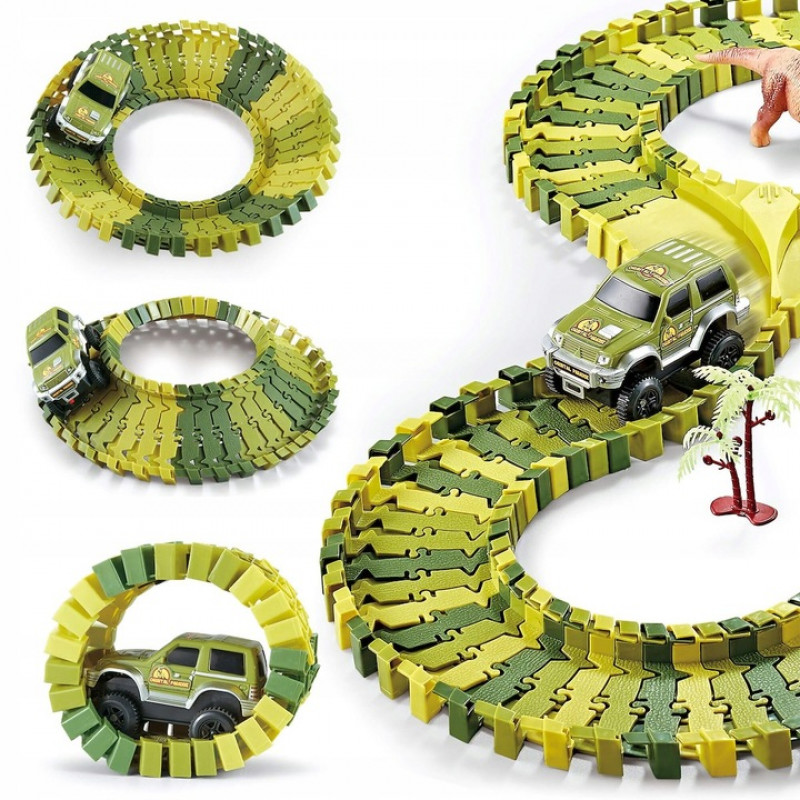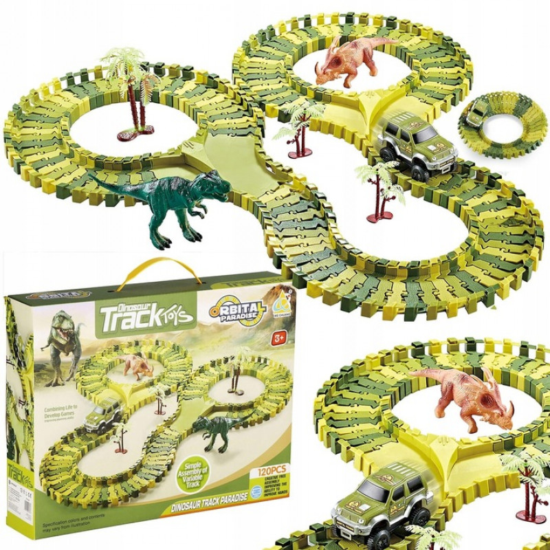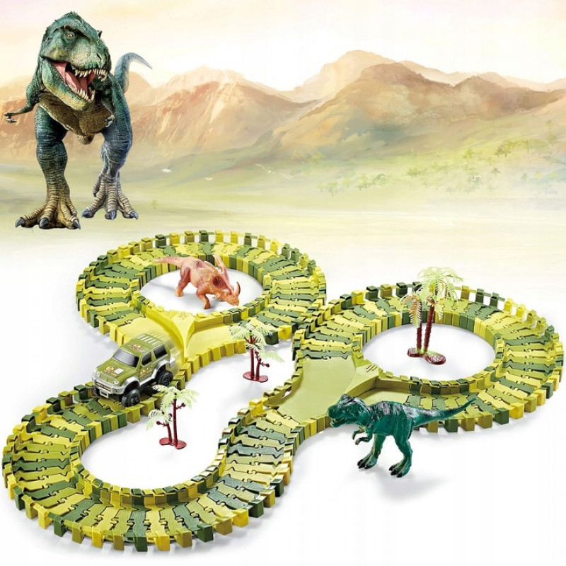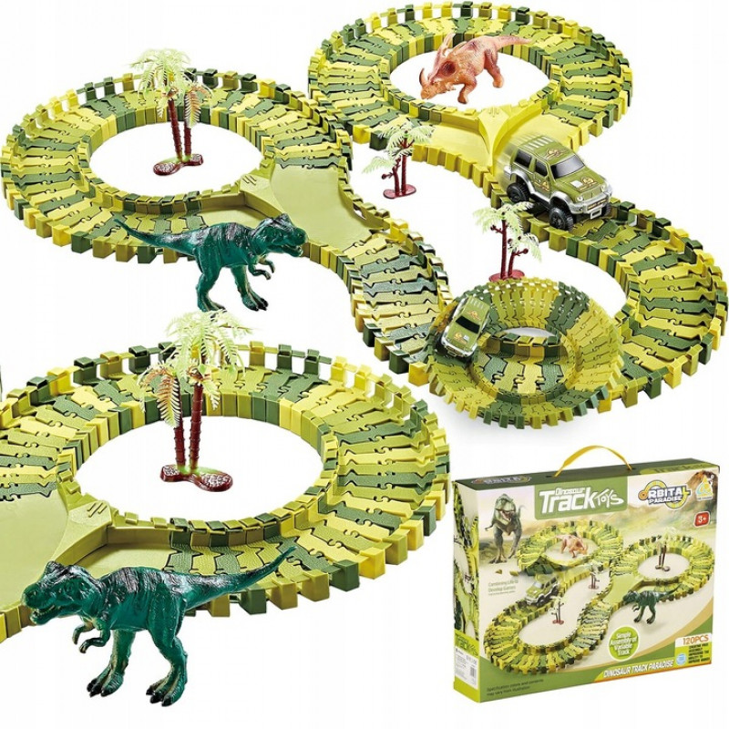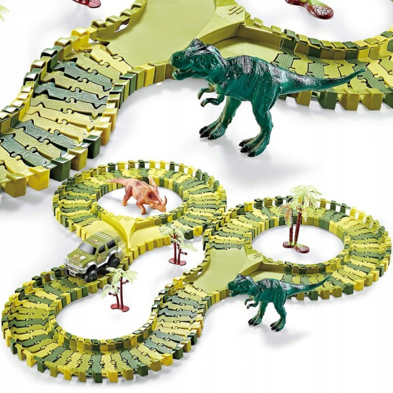 Figurine de dinozauri incluse! Pista noastra de masini este foarte distractiva nu numai pentru copii, ci si pentru adulti! Copiii nu trebuie sa se joace doar cu semenii lor, ci pot invita persoanele in varsta sa se joace – in special parintii lor. Ei vor experimenta multa placere participand la mitingurile ulterioare cu copiii lor si urmarindu-si copiii cum se dezvolta prin joaca! Pista este alcatuita din elemente mici colorate care sunt conectate folosind stifturi de blocare. Conectarea si separarea acestora va fi o activitate extrem de simpla pentru fiecare copil, care ii va oferi si multa bucurie. Cate forme diferite va putea forma pista din numeroase elemente colorate! Puteti asambla pista cu copilul in multe moduri diferite, ajutandu-l sa se dezvolte prin joaca. Beneficiile pe care copiii le obtin din acest tip de divertisment sunt evidente: