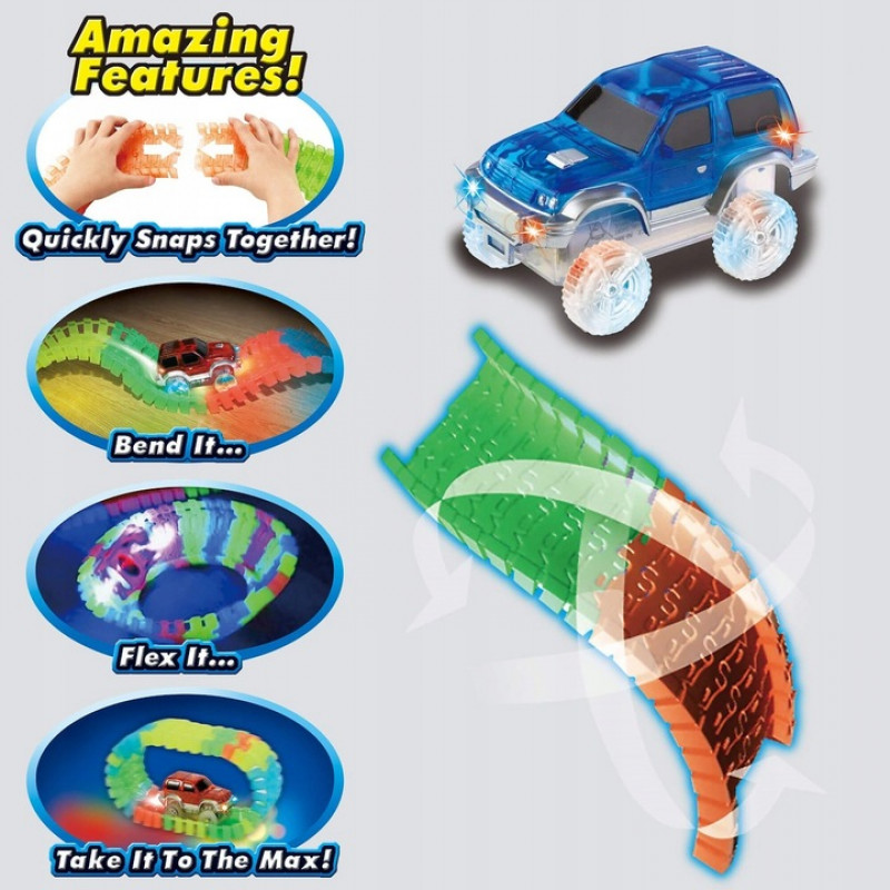 Piesa are proprietati fluorescente - straluceste in intuneric! Pista noastra de masini este foarte distractiva nu numai pentru copii, ci si pentru adulti! Ei vor experimenta multa placere participand la mitingurile ulterioare cu copiii lor si urmarindu-si copiii se dezvolta prin joaca! Pista este alcatuita din elemente mici colorate care sunt conectate folosind stifturi de blocare. Conectarea si separarea acestora va fi o activitate extrem de simpla pentru fiecare copil. Puteti asambla pista cu copilul in multe moduri diferite, ajutandu-l sa se dezvolte prin joaca. Beneficiile pe care copiii le obtin din acest tip de divertisment sunt evidente: