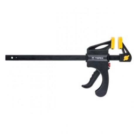 Clema rapida TOPEX (ref. 12A520) este o clema universala, cu posibilitatea de a o folosi ca o clema, distantier si altele. Este utila atat in timpul lucrarilor de reparatii si constructii profesionale, cat si in timpul lucrarilor mici de reparatii si constructii. Manerul pistolului este fabricat din plastic de inalta calitate, profilat pentru un confort sporit in utilizare. in plus, este echipat cu un sistem de alunecare rapida, care faciliteaza munca cu unealta. Certificatele TÜV si GS reprezinta o garantie a fiabilitatii produsului. Marca TOPEX se adreseaza pasionatilor de bricolaj.