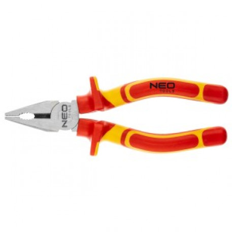 Cleste universal Neo 1000V (ref. 01-221) cu o dimensiune de 180 mm. Omologat pentru lucrul la tensiuni de pana la 1000 V. Falci fabricate din otel crom vanadiu de inalta calitate, calite prin inductie pentru a asigura taierea si modelarea eficienta a firelor dure. Manerul ergonomic din doua materiale sporeste confortul utilizatorului. Fiabilitatea produsului este confirmata de o garantie de 25 de ani. Marca Neo raspunde asteptarilor profesionistilor.