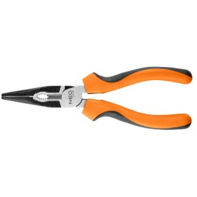 Cleste cu varf lung 40% FS 160 mm, Neo, un instrument profesional pentru casa si atelier. Clestii provin dintr-o linie noua de clesti dezvoltata de marca poloneza Neo. Este o unealta de inalta calitate din clasa 40% FS, caracterizata de o tija ridicata. Aceasta tehnologie inseamna ca trebuie sa se aplice cu aproximativ 40% mai putina forta la presiune. Creat pentru prinderea precisa a diferitelor obiecte. Falcile alungite si conice fac din acesti clesti ideali pentru toate tipurile de reparatii electronice, de aparatura alba si de electrocasnice.