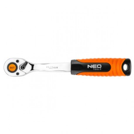 Clichet 1/4" 90t, cu lungimea de 155 mm, cu corp din otel crom vanadiu, fabricat in conformitate cu DIN 3122.Mecanismul de clichet cu 90 de dinti este fabricat din otel crom-molibden extrem de durabil, prelungind durata de viata a sculei. Manerul ergonomic din doua materiale imbunatateste confortul de lucru. Calitatea uneltei confirmata de certificatul TÜV si de garantia de 25 de ani a producatorului.