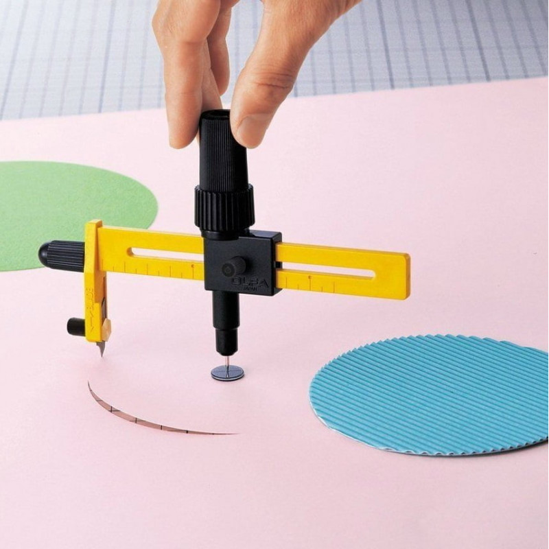Cutit-cutter de la OLFA, calitate japoneza. Cutit-cutter de taiat cercuri cu diametrul intre 1,6 si 22 cm. Prevazut cu clicket. Recomandat pentru materiale textile. Lame: COB-1