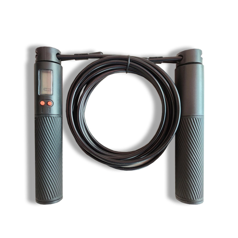 Aceasta coarda de sarit reglabila vine cu un ecran LCD si contor digital incorporat care numara sariturile si afiseaza distanta, ajutandu-va sa va masurati progresul si rezultatele. Prezinta doua butoane, buton de resetare si schimba modul de afisare de la numarare la distanta. Coarda de sarit este fabricata din sarma cu acoperire de PVC, care este suficient de puternica pentru a rezista la indoire, rupere sau deformare. Se poate poate folosi in siguranta pe asfalt, trotuar, terasa sau in sala. Manerele sunt din plastic siliconat extrem de confortabile, ergonomice. Este recomandata pentru antrenament de fitness, box sau aerobic, atat pentru barbati cat si pentru femei.Specificatii:Coarda de sarit reglabila cu ecran LCDAfiseaza numarul de sarituri si distantaDimensiune maner: 167*30mmDimensiune franghie: 3m*4.8mmCuloare: negruMaterial: sarma, PVC, plastic siliconatProducator: Hiperlion