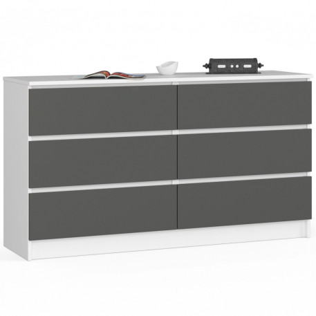 Scurta descriere Comoda K140 alb/grafit este o piesa moderna si incapatoare, potrivita pentru dormitor, living sau birou. Cu sase sertare spatioase, ofera solutii practice pentru organizarea hainelor, documentelor sau accesoriilor. Finisajul mat in combinatie de alb si gri confera eleganta si versatilitate, potrivindu-se perfect in orice tip de amenajare.