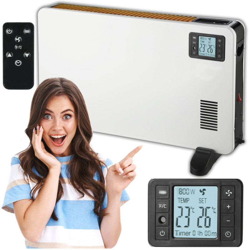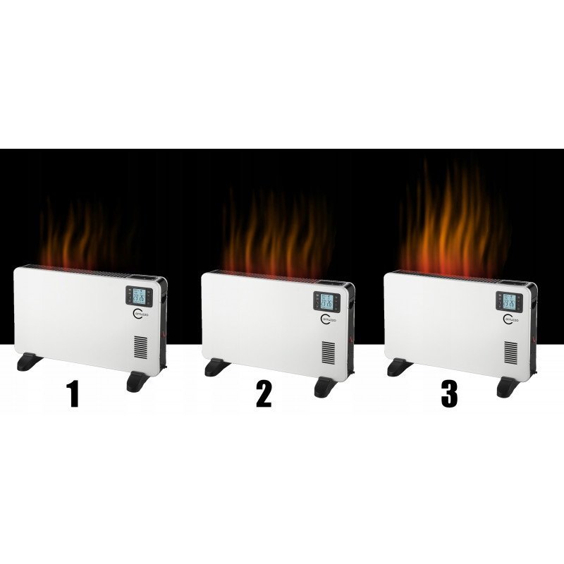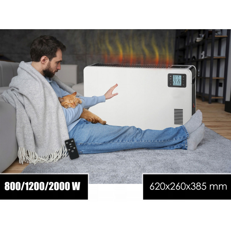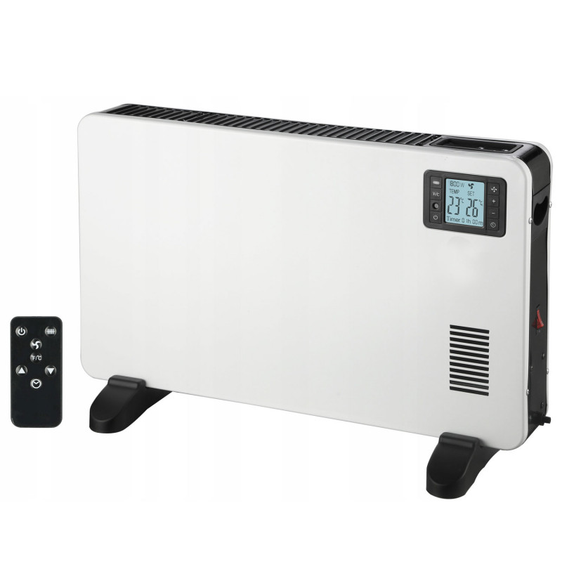 Specificatii tehnice: putere: 800/1200/2000 W (in functie de setarea nivelului de incalzire)sursa de alimentare: 230 V 50/60 Hz3 niveluri de putere de incalzirefunctie ventilatorprotectie la supraincalzirecontrolul temperaturii 5-37st.CScala C/FAfisaj LCDcronometru 1-24htelecomandamasurarea temperaturii ambientalelungimea cablului de alimentare 1,4mdimensiuni: 60 x 39 x 25cm (inclusiv picioarele)dimensiuni ambalaj: 65x43x14cm