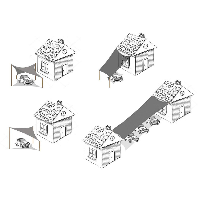 Poate fi montata la piscina, terasa, restaurant Confectionate din polietilena cu acoperire hidrofoba , rezista la ploaie, vant si expunerii prelungite la soare, fara a-si schimba proprietatile.Colturile sunt ranforsate si au inele de otel inoxidabil special concepute pentru rezistenta crescuta.Confera un grad ridicat de umbrire, facilitand transferul de aer pe verticala, asigurand astfel umbra de calitate fara „efect de sera”.Asigura protectie impotriva razelor UV