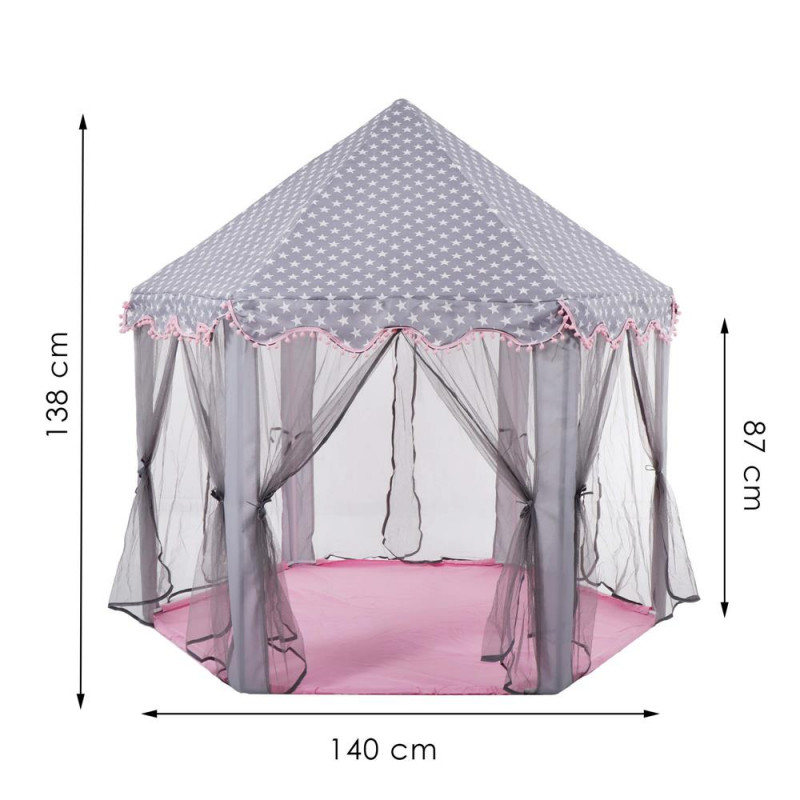 Dimensiunea husei: 54 x 36 cm Corturile pentru copii sunt cele mai la moda completari ale camerelor copiilor, iar vara, in zilele insorite, vor fi grozave si in gradina sau pe terasa. Acestea vor permite celor mai mici membri ai familiei sa-si dezvolte imaginatia in timp ce se joaca cu fratii sau colegii. Serile petrecute impreuna cu parintii tai pot fi diversificate stand inauntru si citind basmele preferate. Vor fi si o idee grozava de cadou care va pune zambetul pe fetele tuturor celor mici!
