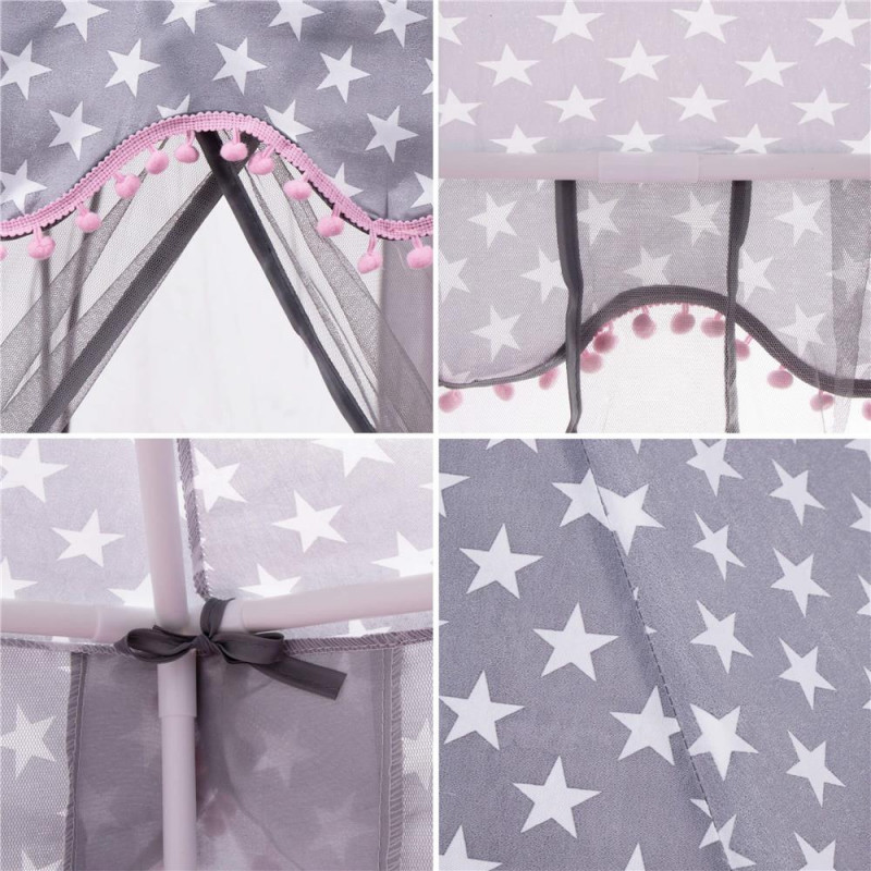 Sprijina creativitatea: cortul stimuleaza imaginatia si creativitatea, permitand copiilor sa-si creeze propriile lumi de joaca.