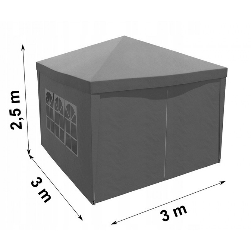 Dimensiuni generale: lungime aprox. 3m, latime aprox. 3m, inaltime in punctul cel mai inalt 2,5m.