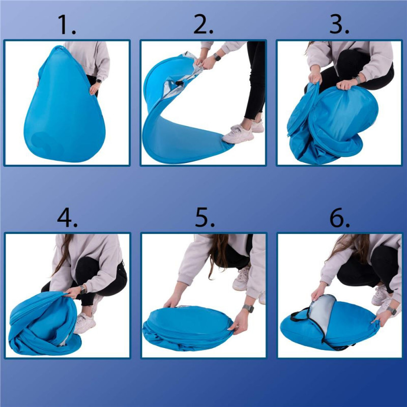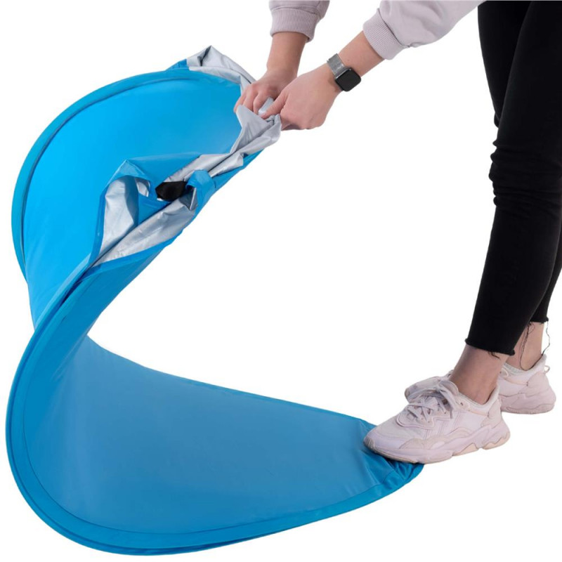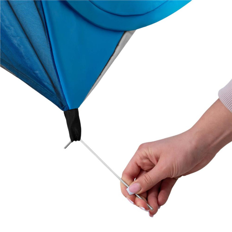 Scurta descriere: Cortul de plaja POP-UP este ideal pentru protectie rapida impotriva soarelui, vantului si umezelii. Se monteaza in cateva secunde datorita tehnologiei autoexpansibile si ofera ventilatie eficienta prin plasa din partea din spate. Include husa de transport si accesorii pentru fixare.