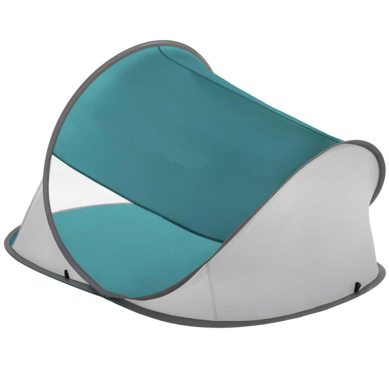 Scurta descriere: Acest cort POP-UP pentru plaja este ideal pentru familiile care cauta confort si protectie solara. Structura usoara din fibra de sticla se deschide in cateva secunde si ofera un adapost eficient impotriva vantului, soarelui si umezelii. Include husa cu maner, cuie si snururi pentru fixare, fiind compact si usor de transportat.