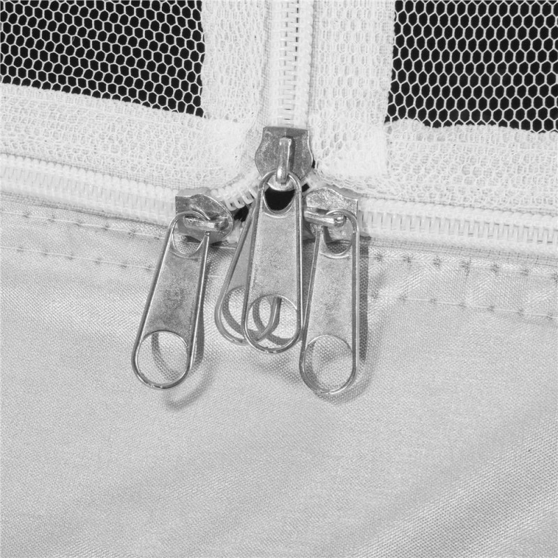 Intrarea principala se inchide cu fermoar in doua etape: inchiderea plasei de tantari si apoi inchiderea partii exterioare a cortului.