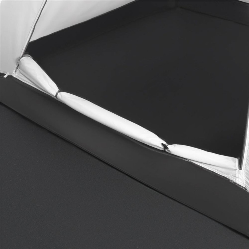 Geanta de transport comoda si practica inclusa Cadrul cortului este fabricat din fibra de sticla, care este un material usor, flexibil si puternic, asigurand stabilitatea structurii. Rafalele puternice de vant nu va vor speria - suruburile metalice permit fixarea sigura a cortului la sol. Datorita cusaturilor sigilate, cortul nu permite patrunderea apei atunci cand ploua - asigurati-va doar ca materialul este intins corespunzator.Interiorul cortului gazduieste cu usurinta patru persoane, iar vestibulul mare, care se poate inchide, ofera un spatiu suplimentar protejat de ploaie - puteti introduce acolo pantofii, rucsacurile si restul echipamentului fara sa va faceti griji ca veti fi surprinsi de ploaie in timpul noptii. Plasa de ventilatie si ferestrele cu plase de tantari asigura un flux adecvat de aer proaspat pentru confort maxim si un somn sigur si sanatos.