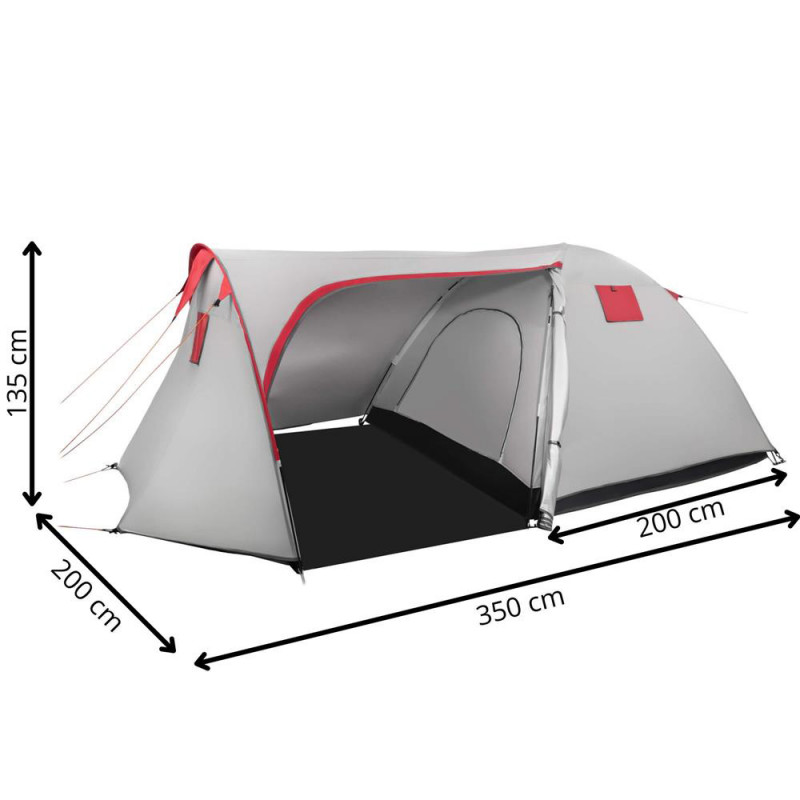 Latime: 200 cm Un cort mare pentru 4 persoane cu vestibul este esenta confortului si a sigurantei in timpul utilizarii! Fabricat din materiale de cea mai buna calitate, acesta garanteaza protectie impotriva ploii, vantului si a altor conditii meteorologice nefavorabile, oferind in acelasi timp o ventilatie excelenta si spatiu interior.