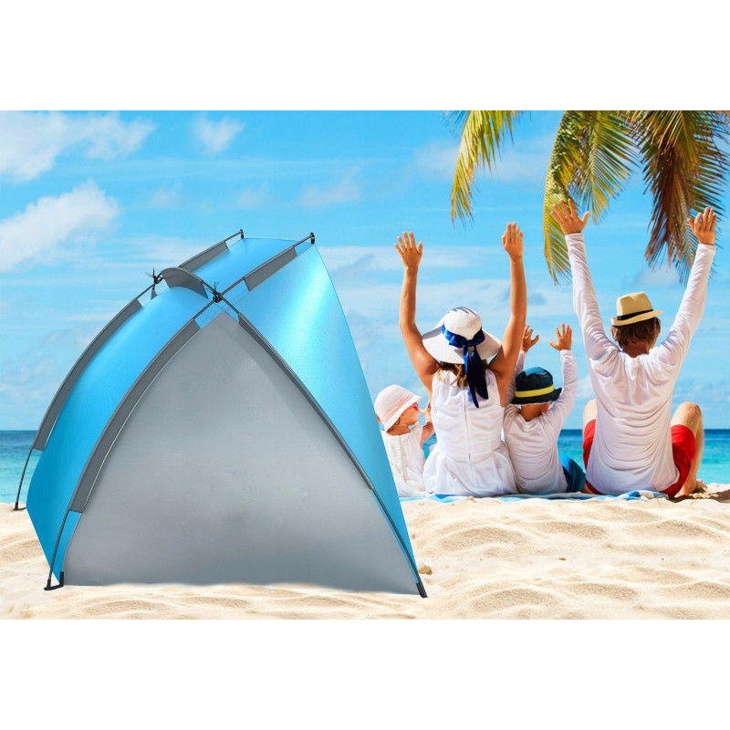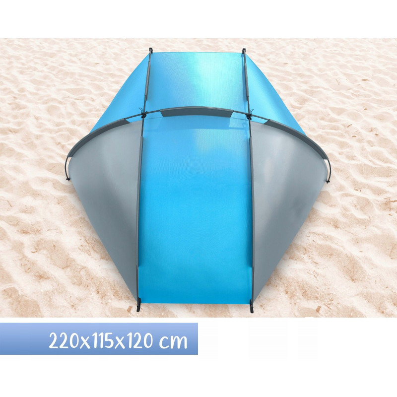 asigura o protectie eficienta impotriva soarelui si a vantului Atunci cand caldura este abundenta la plaja, este o idee buna sa aveti un adapost adecvat. Cortul nostru vine in ajutor cu un strat special de poliester pentru a va proteja de razele soarelui. Acesta protejeaza eficient impotriva vantului si este rezistent la apa. Toate aceste caracteristici nu ar fi fost posibile daca nu ar fi fost vorba de utilizarea unor materiale de foarte buna calitate.