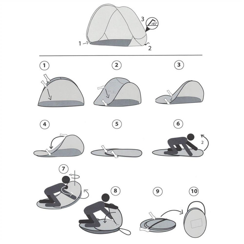 Inclus: instructiune de asamblare Trei cuie de otel Husa cu manere pentru transport POP UP - TEHNOLOGIE DE AUTOMONTAREFolosirea in cadru a unor fire speciale, flexibile din fibra de sticla, ne-a permis sa obtinem tehnologia Pop Up. Ai nevoie doar de cateva secunde pentru a dezasambla complet produsul si a incepe sa te bucuri de momentele de relaxare.De asemenea, dureaza putin timp pentru a pune cortul inapoi in husa. Datorita sistemului pop-up, vei economisi timp la desfasurare si pliere.PROTECTIE IMPOTRIVA SOARELOR - 50 UVIn timpul caldurii grele pe plaja, merita sa aveti un adapost potrivit. Cortul este echipat cu un strat special de poliester care protejeaza impotriva razelor solare. Are un filtru solar de pana la 50 UV, in plus, protejeaza eficient impotriva vantului si este impermeabil. Toate aceste caracteristici nu ar fi posibile fara utilizarea materialelor de foarte inalta calitate.AVANTAJE ALE UNUI CORT POP-UP- Tehnologia pop-up- Desfacerea si plierea dureaza cateva secunde- Constructie usoara si durabila din fibra de sticla- Protejeaza impotriva vantului si umezelii- Pardoseala asigura o izolare excelenta fata de sol- Protectie solara perfecta - 50 UV- Dupa pliere, ocupa putin spatiu- Rezistent la apa- Convenabil si usor de transportat - cu maner de transport- Culori discrete, luminoase si design interesant CONSTRUCTIE USOARA SI DURABILAStructura cortului este realizata din fire acoperite cu fibra de sticla, este un material foarte apreciat, extrem de durabil si rezistent la coroziune. Fibra de sticla este unul dintre cele mai importante materiale de constructie, in tandem cu poliesterul de calitate superioara (capata cortului) si polietilena (pardoseala) perfect izolatoare, am obtinut un cort ideal.PERFECT PENTRU TOATA FAMILIACortul nostru de plaja a fost conceput pentru a petrece timp de neuitat cu familia dvs. Dimensiunile, proprietatile, culorile si designul acestuia vor satisface cu siguranta asteptarile celor mai tinere si mai in varsta generatii.