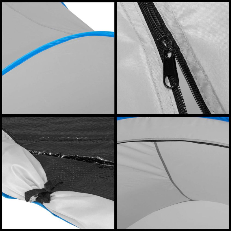 Geanta de transport cu manere de transport Folosirea unor fire speciale flexibile din fibra de sticla in cadru ne-a permis sa realizam tehnologia Pop Up. Aveti nevoie doar de cateva secunde pentru a desfasura complet produsul si a incepe sa va bucurati de momente de relaxare de neinlocuit. Atunci cand caldura este abundenta la plaja, este o idee buna sa aveti un adapost adecvat. Cortul nostru vine in ajutor cu un strat special de poliester pentru a va proteja de razele soarelui. Acesta protejeaza eficient impotriva vantului si este rezistent la apa. Toate aceste caracteristici nu ar fi fost posibile daca nu ar fi fost vorba de utilizarea unor materiale de foarte buna calitate.