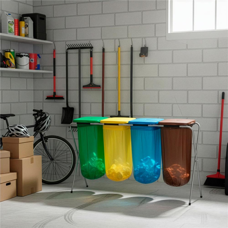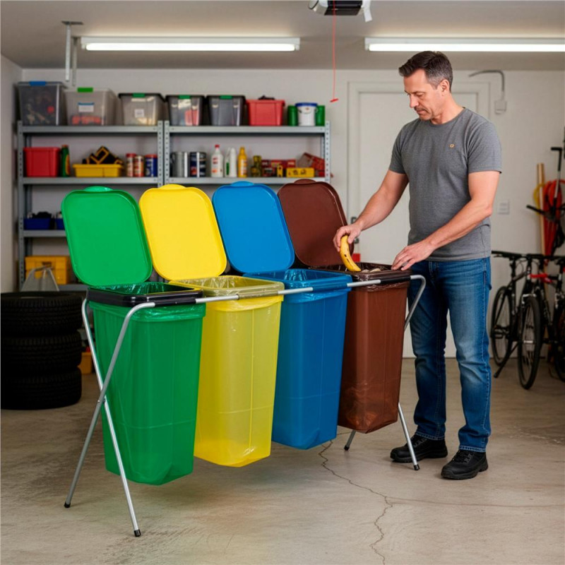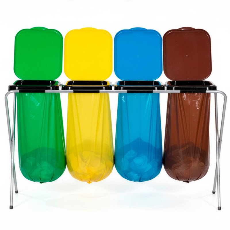 Scurta descriere: Cos de gunoi cu 4 compartimente, proiectat pentru colectarea selectiva eficienta a deseurilor. Structura metalica este stabila si usoara, iar capacele din PP sunt prevazute cu clapeta interioara pentru fixarea sacilor. Ideal pentru bucatarie, spatii tehnice sau zone utilitare.