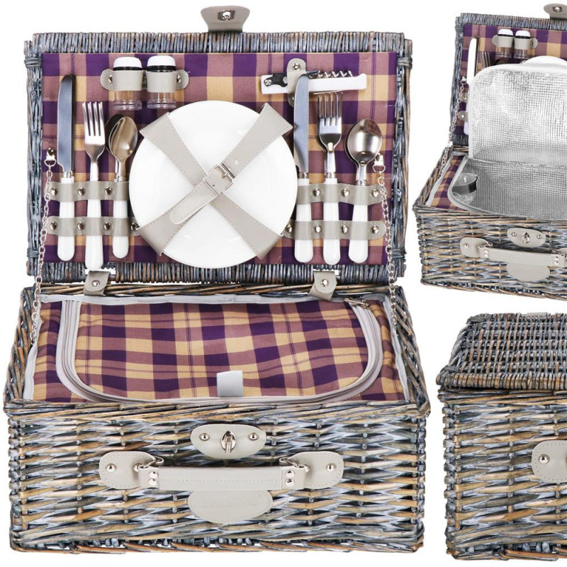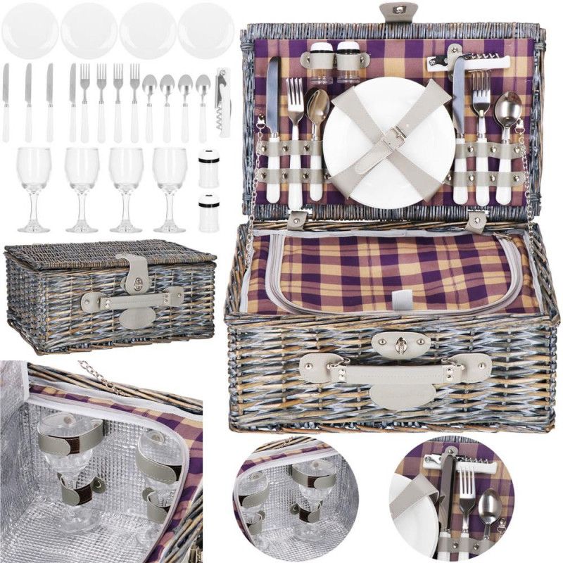 Produs aprobat pentru contactul cu alimentele Cosul de picnic extrem de spatios cu accesorii este o solutie fantastica atat pentru zilele calde, cat si pentru cele reci. Va fi util pentru excursii in afara orasului, excursii la plaja sau la munte. Datorita stratului sau termoizolant, acesta ramane cald pentru o perioada lunga de timp. Constructia din rachita intarita si finisajul manerului asigura ca produsele pot fi transportate in siguranta.