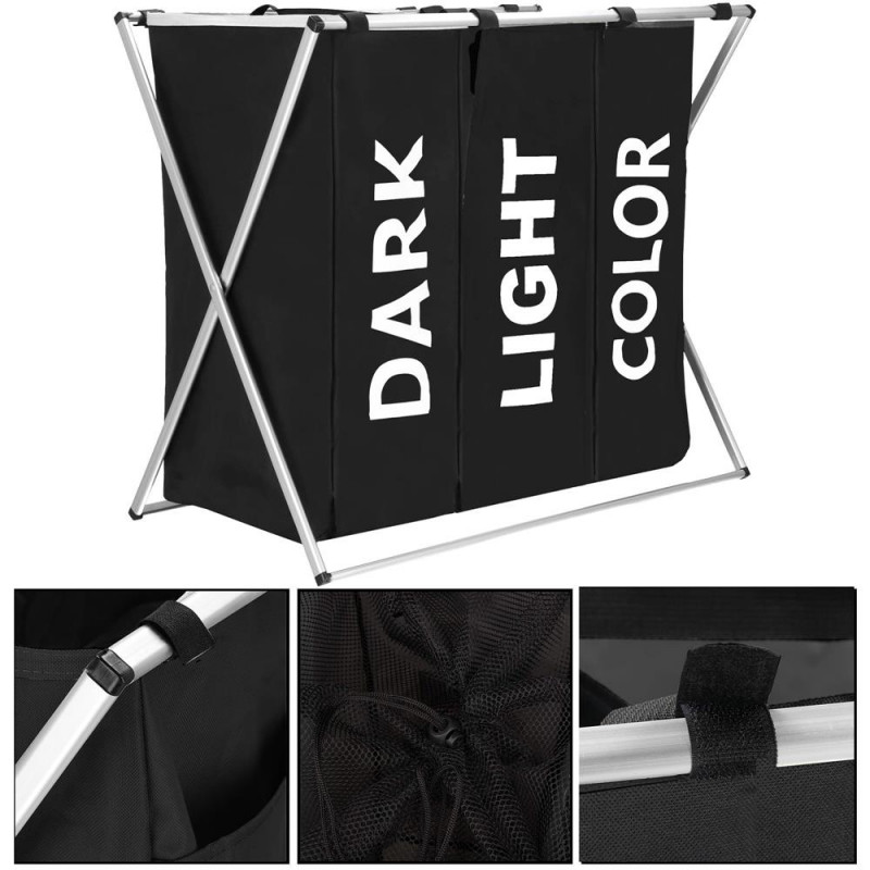 Informatii suplimentare: manere de transport, posibilitate de detasare a compartimentelor din cadru, posibilitate de separare a lenjeriei in functie de culori, buzunare suplimentare in spatele cosului Cosul de rufe cu trei compartimente si usor este o optiune excelenta pentru a completa o baie moderna. Produsul nu numai ca arata extrem de impresionant si modern , dar este si un plus practic si functional la interior, care cu siguranta va va usura treburile gospodaresti zilnice.