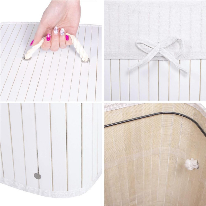 Scurta descriere Cosul de rufe cu structura din bambus este o solutie practica si eleganta pentru depozitarea rufelor murdare in baie sau spalatorie. Sacul textil interior este detasabil si poate fi curatat usor, iar capacul prevazut cu maner din sfoara pastreaza continutul ascuns si ordonat. Designul compact si capacitatea de 72 litri il fac potrivit pentru utilizarea zilnica.