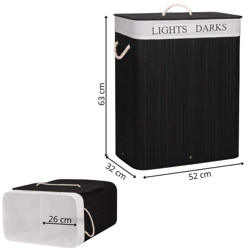 Scurta descriere Cosul de rufe cu doua compartimente este ideal pentru organizarea si sortarea rufelor murdare in baie sau spalatorie. Structura din bambus natural ofera stabilitate si un aspect modern, iar sacul textil detasabil permite depozitarea si transportul usor al rufelor. Compartimentarea dubla faciliteaza separarea hainelor deschise si inchise la culoare, iar capacitatea de 100 litri este potrivita pentru utilizarea zilnica.