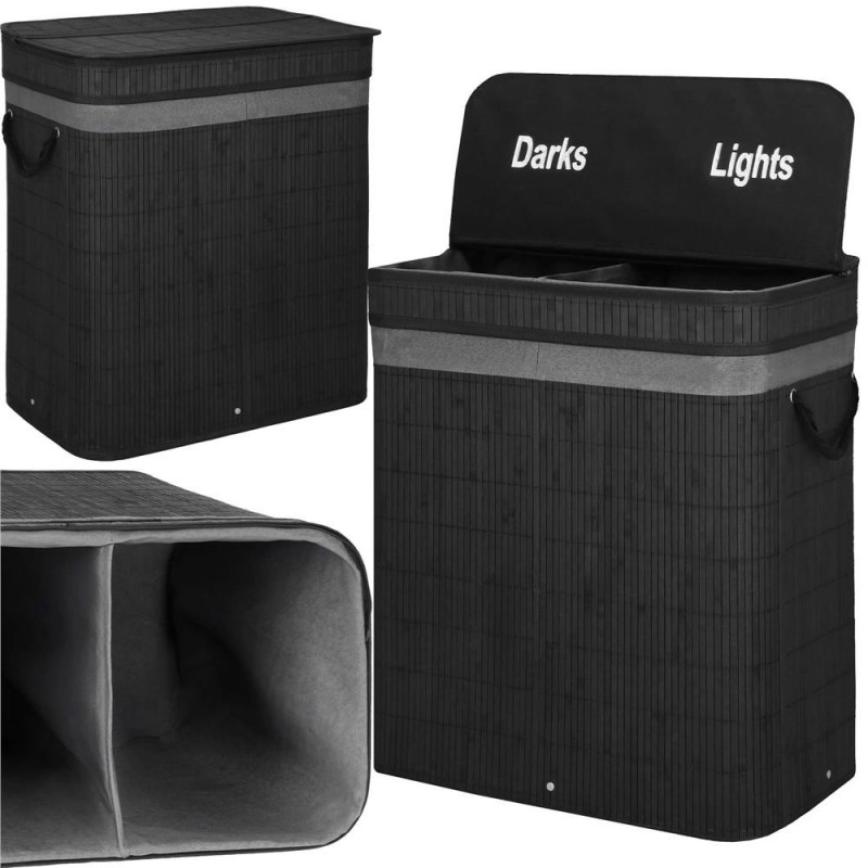 Design extrem de la moda. In interiorul cosului veti gasi o punga detasabila din amestec de poliester si bumbac de culoare deschisa, care poate fi scoasa liber si improspatata prin spalare. Clapeta cu incuietoare permite ascunderea continutului, adica a hainelor care urmeaza sa fie spalate. Cosul este prevazut cu manere cu cordon pe laterale pentru o transportare usoara. Cosul este fabricat din bambus natural de inalta calitate, care este ecologic si, mai presus de toate, usor. Are o capacitate de pana la 100 de litri, astfel incat poate gazdui un numar mare de obiecte.