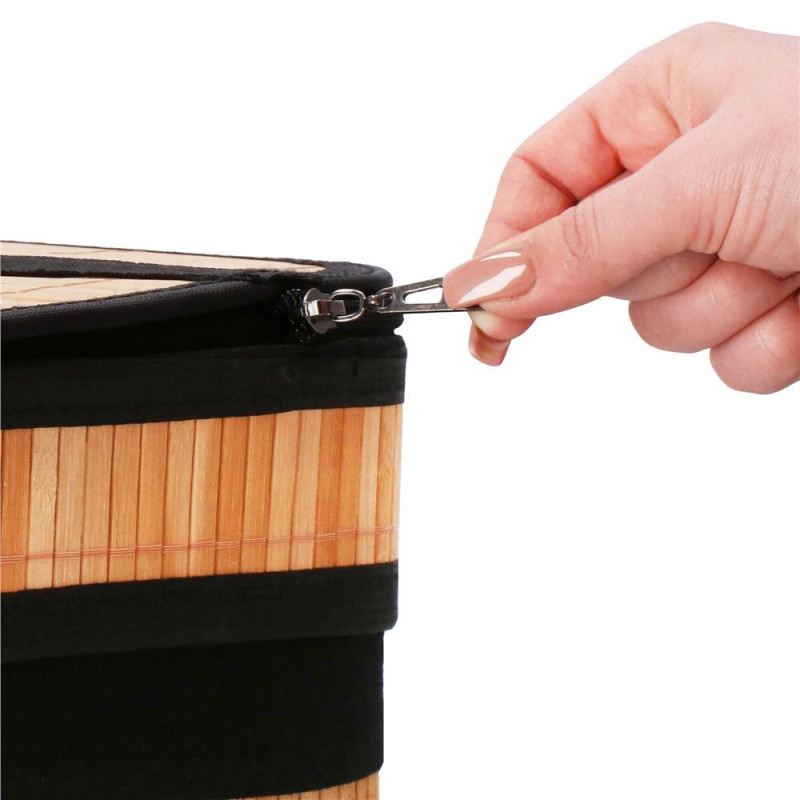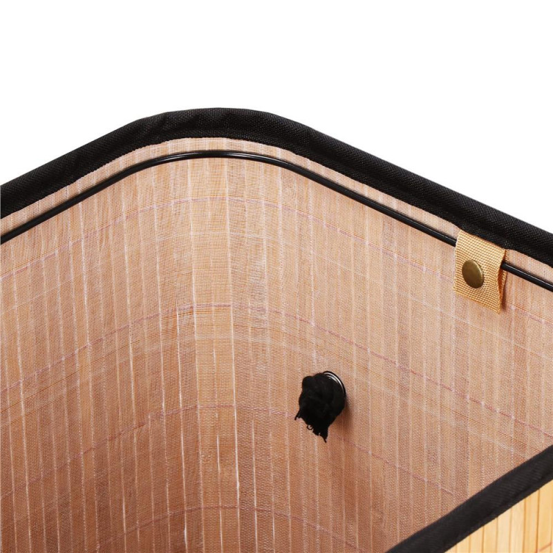 Design extrem de la moda. In interiorul cosului veti gasi o punga detasabila din amestec de poliester si bumbac de culoare deschisa, care poate fi scoasa liber si improspatata prin spalare. Clapeta cu incuietoare permite ascunderea continutului, adica a hainelor care urmeaza sa fie spalate. Cosul este prevazut cu manere cu cordon pe laterale pentru o transportare usoara. Cosul este fabricat din bambus natural de inalta calitate, care este ecologic si, mai presus de toate, usor. Are o capacitate de pana la 72 de litri, astfel incat poate gazdui un numar mare de obiecte.