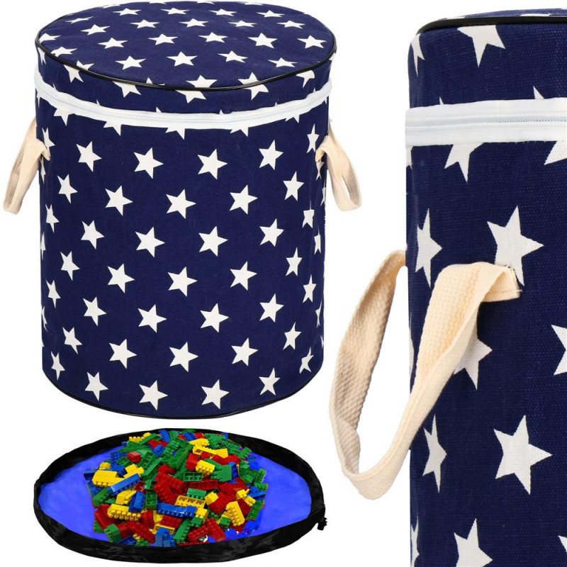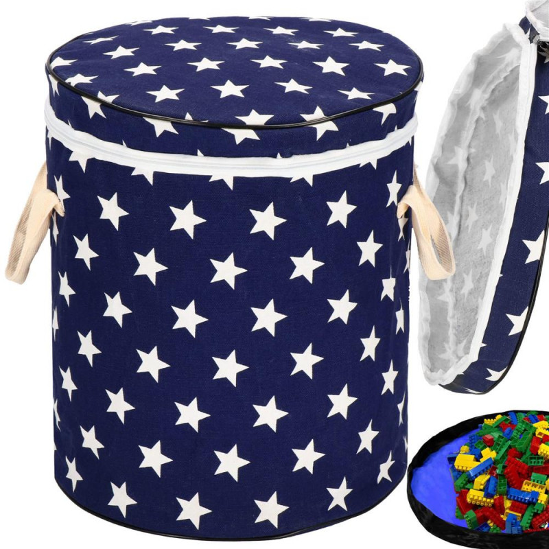 capac detasabil, a carui forma poate fi ajustata cu ajutorul unui cordon cusut in interiorul capacului Un covoras cu guler inalt a fost cusut in interiorul sacului , care va proteja suplimentar continutul. Veti folosi aceasta functionalitate in timpul picnicurilor sau al opririlor in timpul unei excursii cu bicicleta. Fara nici un efort, puteti pune inapoi in buzunarul cosului micile obiecte imprastiate pe covoras. Cosul nostru este multifunctional . Utilizandu-l, puteti sa va organizati rafturile, dulapurile, camerele copiilor sau dormitoarele . Puteti pune in el jucarii, articole de garderoba, paturi , prosoape , produse pentru animale de companie, mici bibelouri. Cosul il puteti folosi pentru a sorta diverse obiecte, de exemplu in functie de culori sau de utilizarea lor.Are o capacitate mare si il puteti umple pana la refuz cu orice articole. In acelasi timp, puteti fi sigur ca produsul nu ocupa mult spatiu si nu aglomereaza camera.