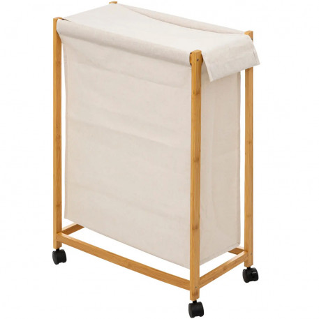 Scurta descriere Cosul de rufe Bambou de la 5 Five imbina estetica naturala a bambusului cu functionalitatea moderna. Datorita celor patru roti integrate, este usor de mutat, iar capacul discret pastreaza ordinea in baie sau spalatorie. Capacitatea de 52 litri il face ideal pentru gospodariile active.