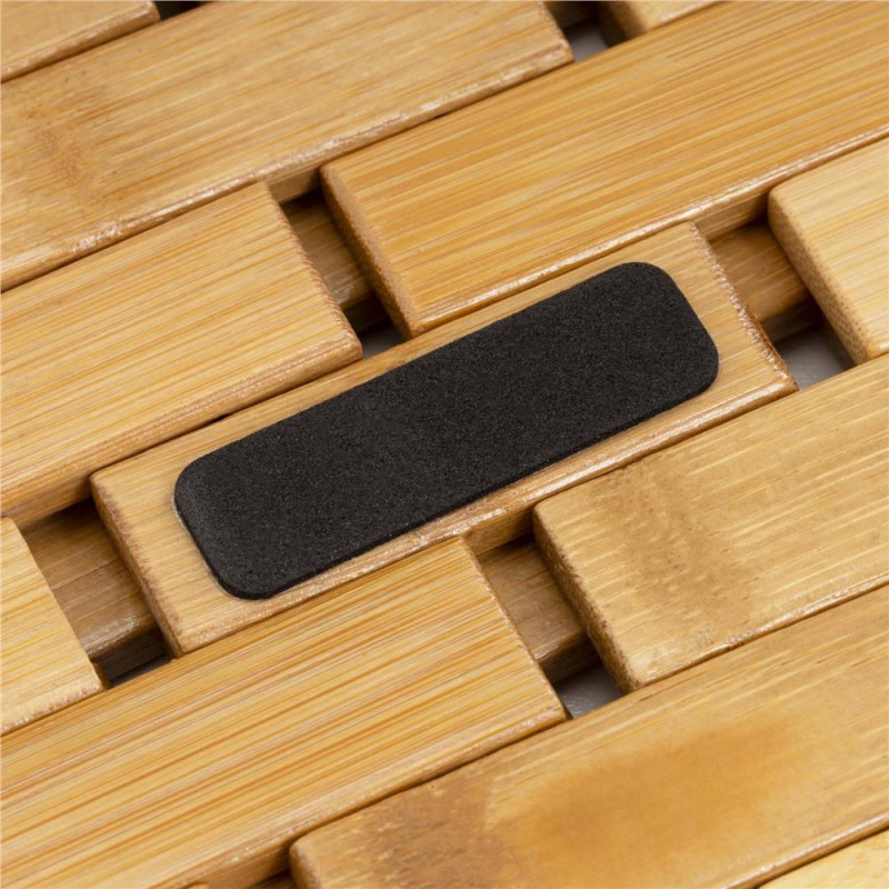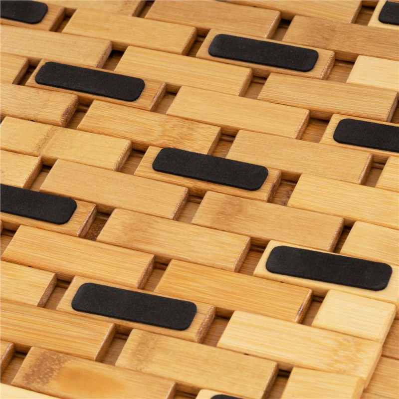 Scurta descriere: Covor de baie realizat din bambus natural, conceput pentru utilizare zilnica in spatii umede. Structura cu lamele permite scurgerea apei, iar suportul antiderapant asigura stabilitate pe diverse tipuri de pardoseala.