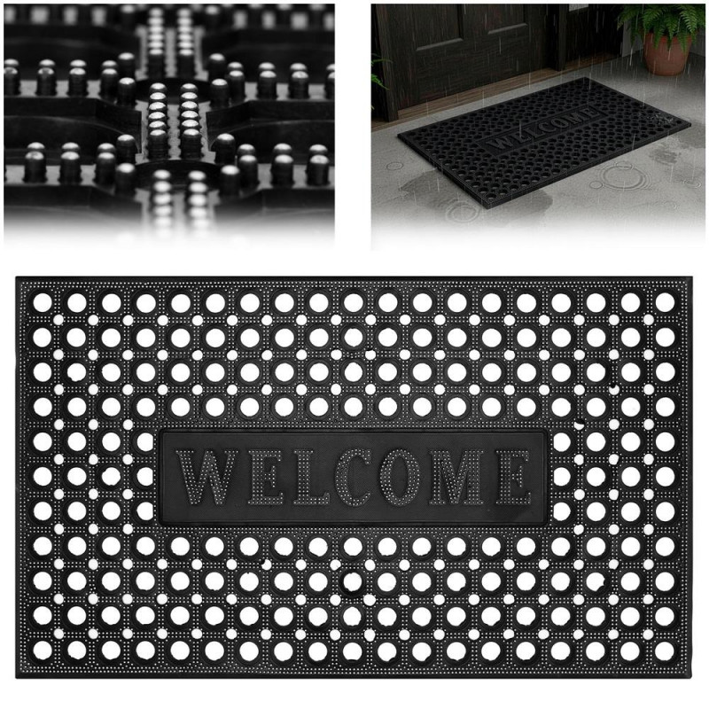 Scurta descriere: Covor de intrare din PVC, cu structura perforata si zona centrala cu mesaj. Conceput pentru retinerea murdariei si umezelii la intrare, potrivit pentru utilizare zilnica in spatii rezidentiale sau comerciale.