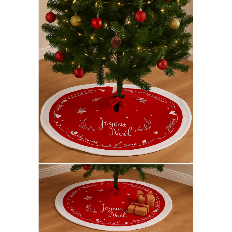 Scurta descriere Covorasul pentru brad, realizat din fetru matlasat, adauga o nota festiva si eleganta decorului de Craciun. Cu diametrul de 90 cm, este ideal pentru a proteja podeaua si pentru a evidentia frumusetea bradului impodobit.