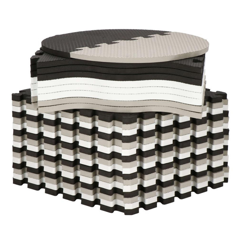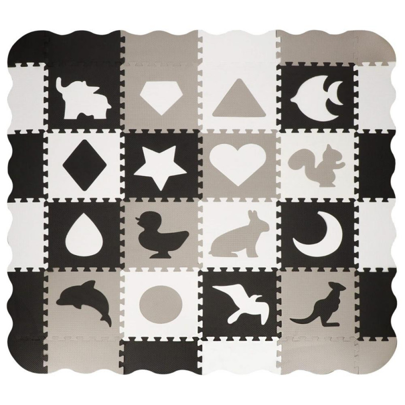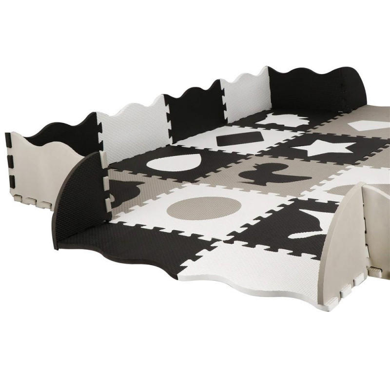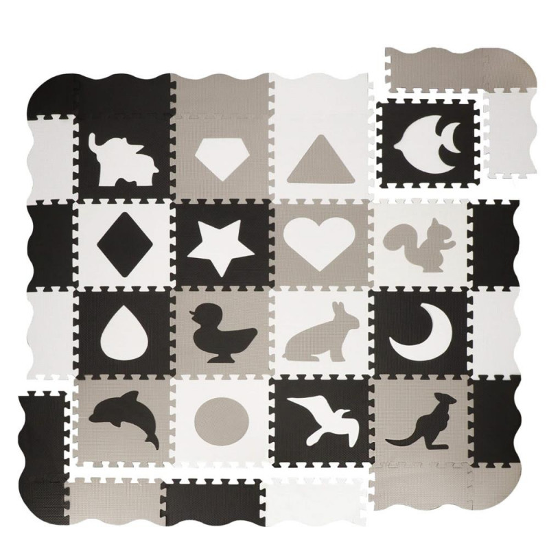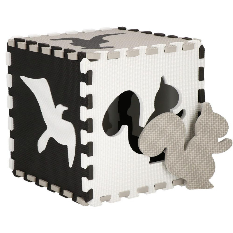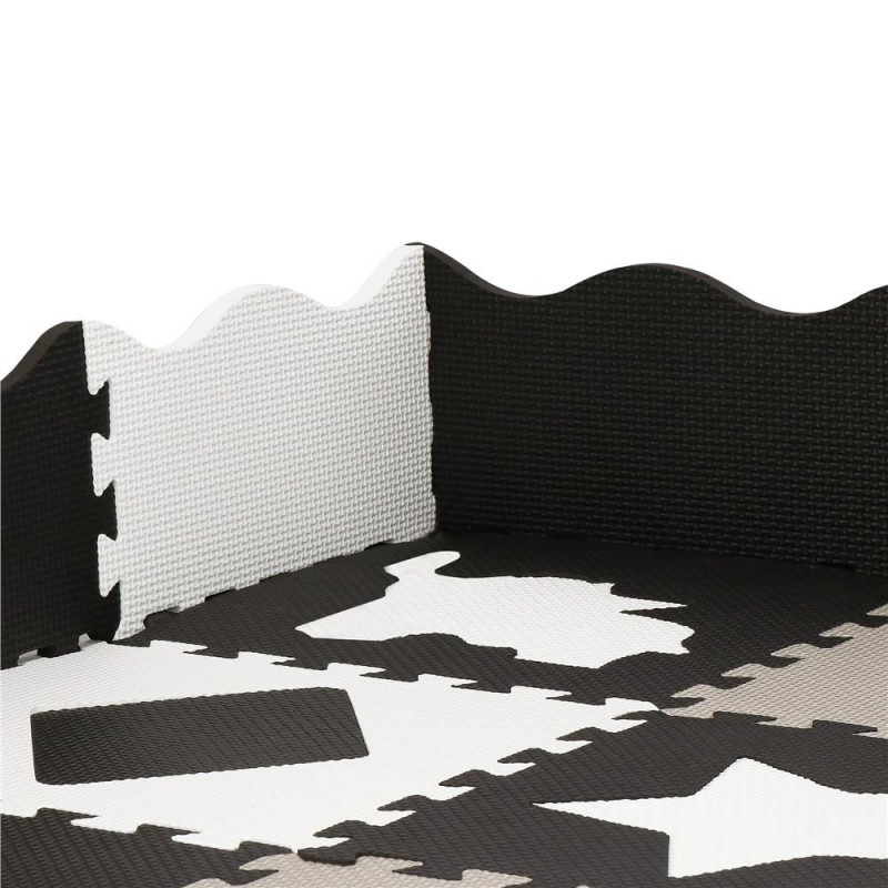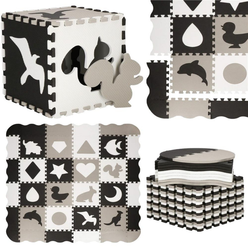 Pentru utilizare: pentru copii cu vârsta de peste 10 luni Un covoras din spuma cu un design educativ este perfect pentru camera unui copil. Va stimula imaginatia copiilor, ii va proteja de solul rece in timpul jocului sau le va permite sa construiasca structuri dupa propriile idei. In plus, este ideala pentru copiii care abia invata sa stea in picioare sau care stau nesigur si inca mai cad sau se rastoarna uneori in timpul jocului. Material netoxic Izoleaza impotriva solului rece Nu absoarbe apa Usor de curatat Durabil Stimuleaza creativitatea Amortizeaza miscarile copilului Posibilitatea de a construi un cub din puzzle Ocupa foarte putin spatiu atunci cand este pliat Covorasul din spuma este format din 52 de elemente (puzzle-uri, umplutura de puzzle si margini), care, atunci cand sunt unite, vor crea un nou loc de joaca preferat pentru cei mai mici membri ai familiei. Covorasul este fabricat din material netoxic si are o grosime de pana la 1 cm, asigurand o izolare excelenta fata de solul rece, dar si amortizand miscarile unui copil care abia invata sa mearga. Puzzle-urile pliabile sunt o modalitate excelenta de a va distra creativ si captivant. Piesele detasabile sunt perfecte pentru a se juca cu recunoasterea formelor - cel mic poate scoate piesele si le poate potrivi fara niciun ajutor. Datorita faptului ca puzzle-urile pot fi asezate atat pe plat, cat si pe verticala, ele pot fi folosite, de exemplu, pentru a crea un parc de joaca.