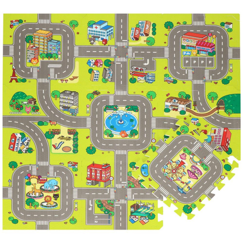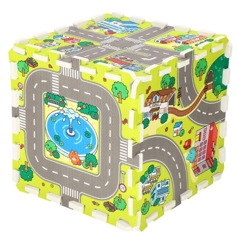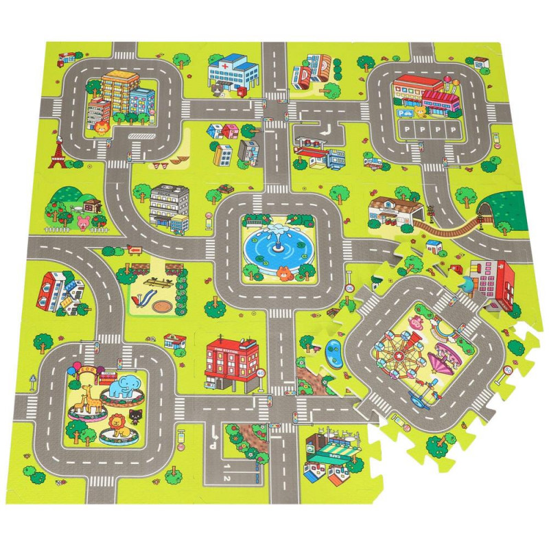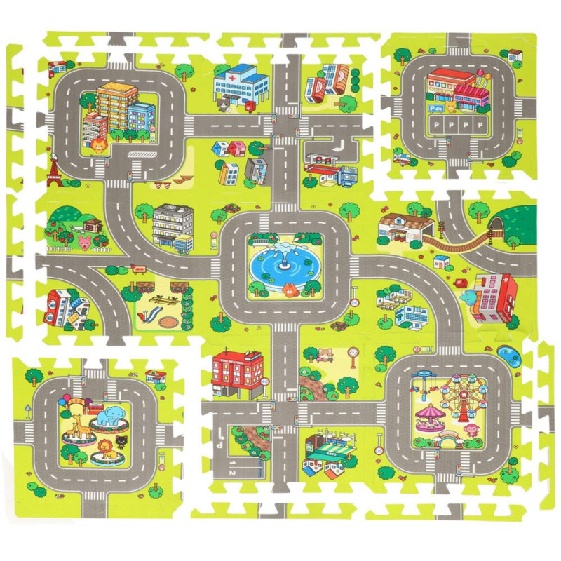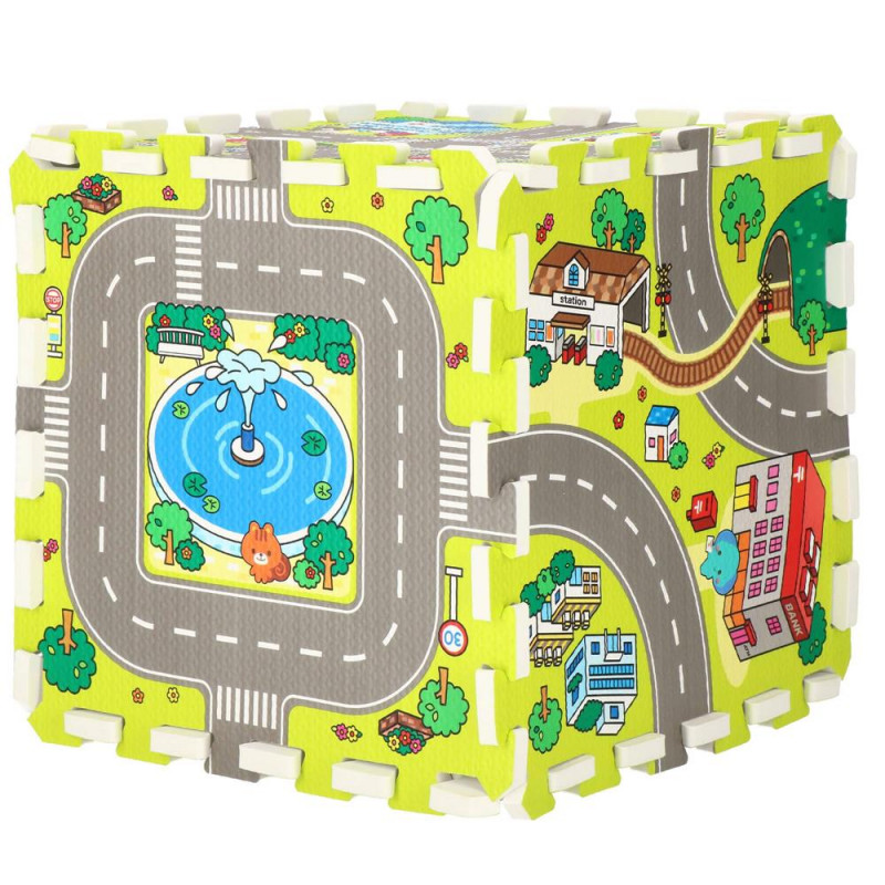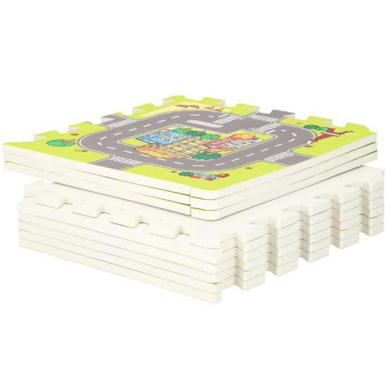 Ocupa foarte putin spatiu atunci cand este pliat Covorasul din spuma este format din elemente (puzzle-uri, umplutura de puzzle si margini), care, atunci cand sunt unite, vor crea un nou loc de joaca preferat pentru cei mai mici membri ai familiei. Covorasul este fabricat din material netoxic si are o grosime de pana la 1 cm, asigurand o izolare excelenta fata de solul rece, dar si amortizand miscarile unui copil care abia invata sa mearga. Puzzle-urile pliabile sunt o modalitate excelenta de a va distra creativ si captivant. Piesele detasabile sunt perfecte pentru a se juca cu recunoasterea formelor – cel mic poate scoate piesele si le poate potrivi fara niciun ajutor. Datorita faptului ca puzzle-urile pot fi asezate atat pe plat, cat si pe verticala, ele pot fi folosite, de exemplu, pentru a crea un parc de joaca.
