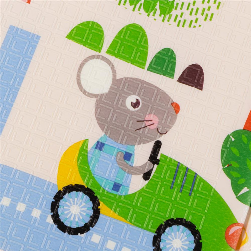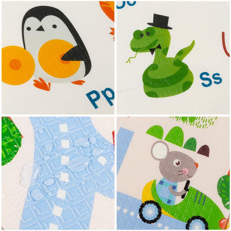 Aditional: reversibil, impermeabil, pliabil, usor de curatat, antiderapant Modelele frumoase in culori vii decoreaza minunat camera copilului dumneavoastra, inlocuind covorul. Va ajuta atunci cand invata sa se tarasca, sa mearga sau sa se joace in siguranta. Un mare avantaj al covorasului educational este rezistenta la apa si suprafata sa antiderapanta, in relief. Materialul din care este confectionat covorasul este extrem de rezistent pentru a asigura o durata de viata lunga. Acesta are un model antiderapant, in relief, iar grosimea sa special selectata izoleaza perfect de podeaua rece si dura. Densitatea si elasticitatea mult mai mare a spumei XPE amortizeaza orice cadere.