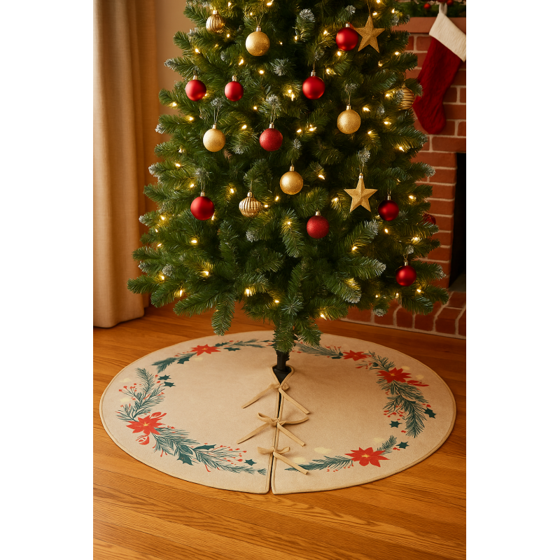 Scurta descriere: Covorul pentru bradul de Craciun adauga o nota eleganta si calda decorului de sarbatoare. Realizat din poliester moale si rezistent, in nuanta bej delicat, completeaza armonios decoratiunile si protejeaza podeaua in jurul bradului.