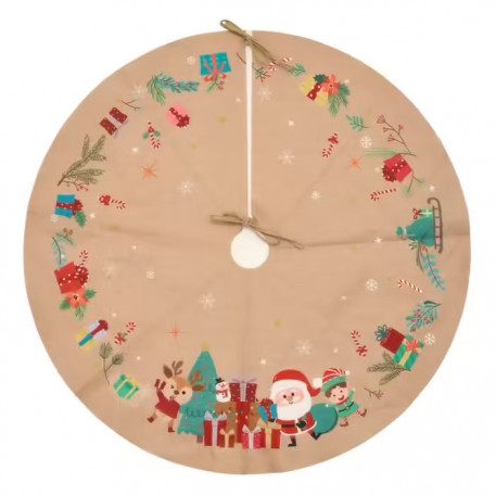 Scurta descriere Covorul decorativ pentru brad aduce un aer rustic si cald decorului de Craciun. Realizat din material cu aspect de iuta si decorat cu motiv Mos Craciun, acest accesoriu completeaza armonios spatiul de sarbatoare si ascunde suportul bradului intr-un mod estetic.