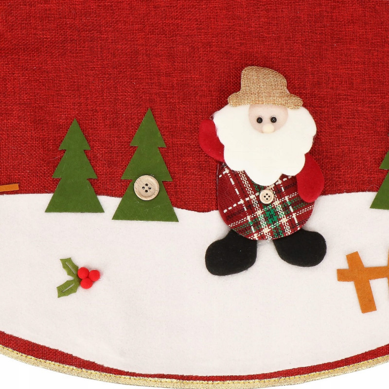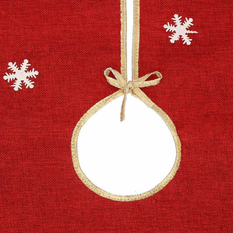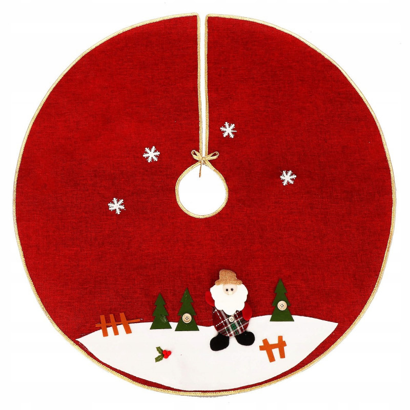 Asociem Craciunul in principal cu un brad frumos si bogat impodobit, asa ca sa ne preocupam si de decorul de sub el. Covorasul va fi accesoriul perfect pentru a aduce o atmosfera de sarbatoare in casa ta. Va fi perfect ca covor pentru cadouri sau va acoperi un suport inestetic pentru brad. Covorasul rosu, cu dimensiunea de 90cm, este realizat dintr-o tesatura cu elemente frumoase din pasla cusute in ea: figurina Sf. Mos Craciun, trei pomi verzi de Craciun, doua garduri maro si patru fulgi de zapada. Toate elementele sunt realizate cu precizie, incantatoare prin farmecul lor. Intregul covoras este terminat cu un chenar auriu. Covorul poate fi atasat cu un snur auriu legat. Covorasul este un accesoriu decorativ ideal care nu numai ca va infrumuseta locul pentru cadouri si va acoperi suportul pentru pomul de Craciun, dar si va face decorul casei tale cald si confortabil.